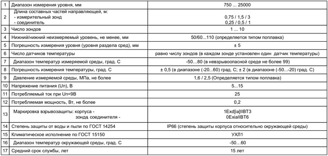 ПМП осуществляет измерение уровня и температуры, производит измерительные преобразования и вычисления и в результате выдает числовые значения параметров измеряемой среды (табл. 1).